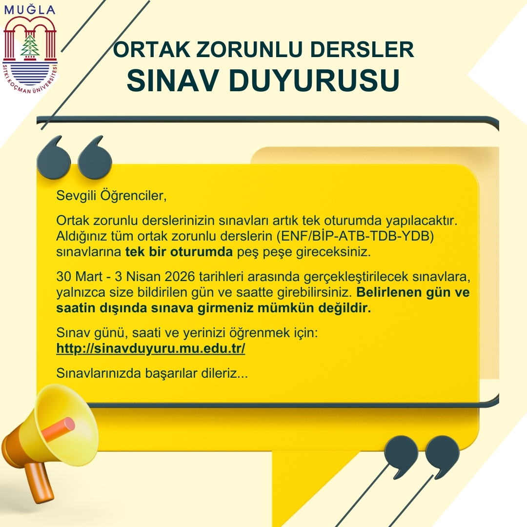 Öğrencilerimizin belirtilen tarihlerde ve saatlerde ilgili sınav salonlarında hazır bulunmaları gerekmektedir. Bölümlere ayrılan saatler dışında sınava girmeleri mümkün olmayacaktır.